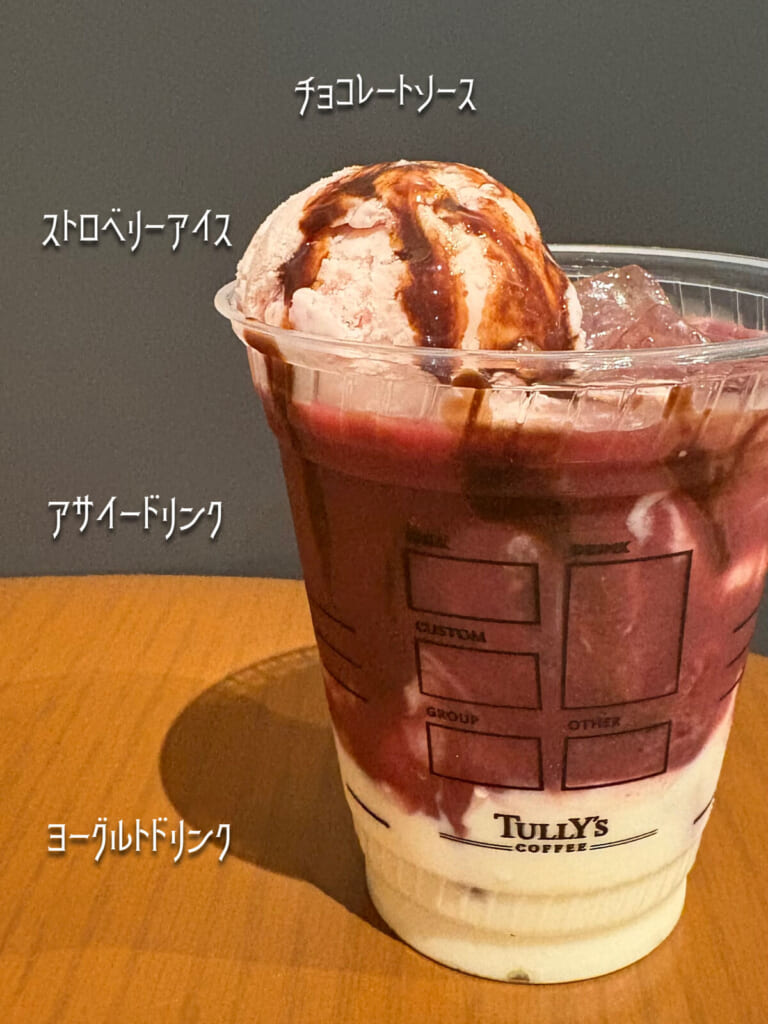 ベースとなっているのはタリーズの定番メニューとしても人気のある、アサイーとヨーグルトの2層で構成されたドリンク。