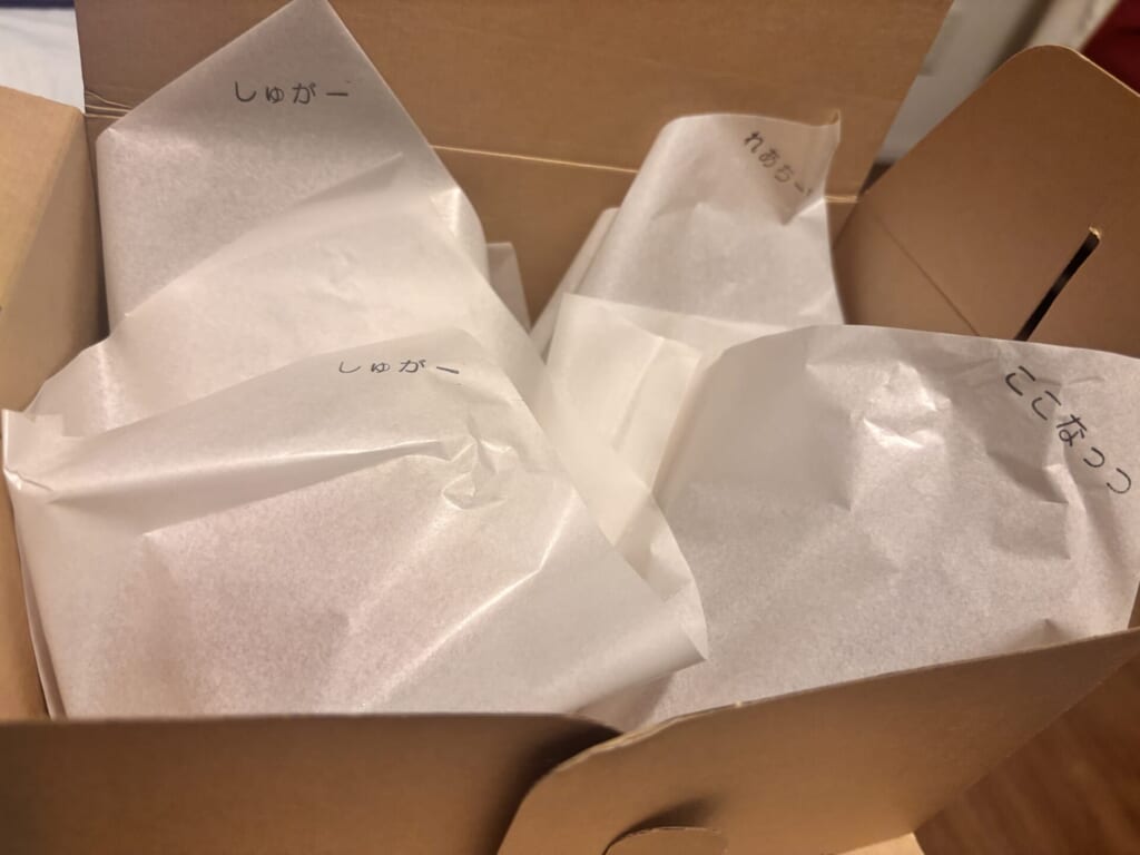 テイクアウトで「シュガー」「ココナッツ」「レアチーズ」を購入。
