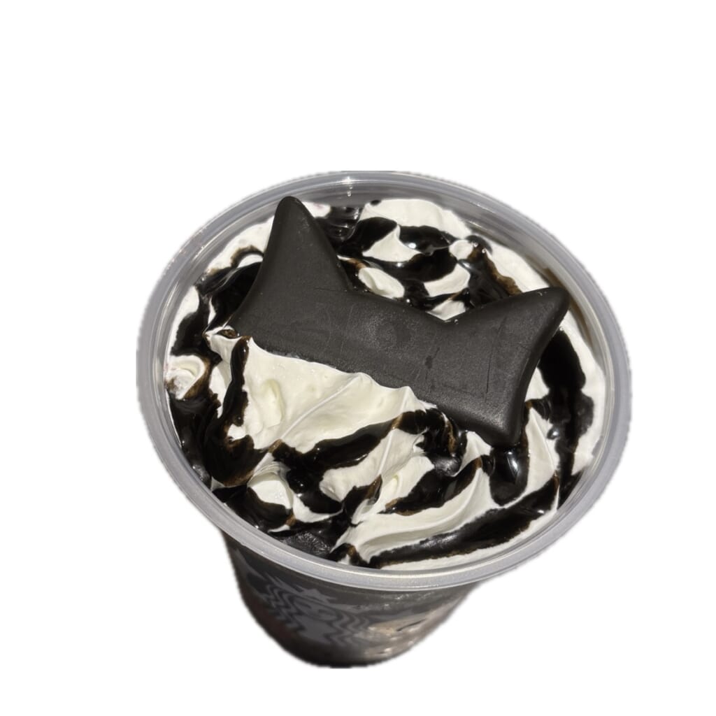トッピングには猫耳型のチョコレートが乗っており贅沢なドリンクとなっています🐈⬛🖤