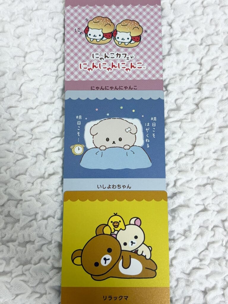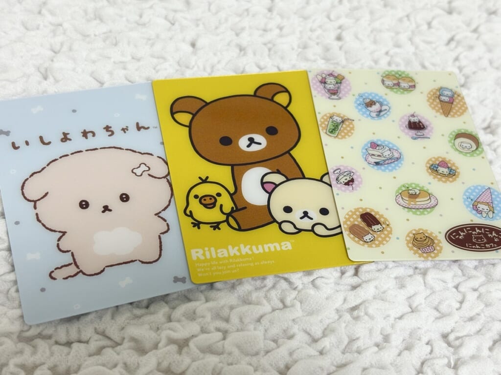 キャラクターカードは画像左より「いしよわちゃん」、「リラックマ」、「にゃんにゃんにゃんこ」の3枚が来てくれました。みんな口元が似ていて可愛い…!