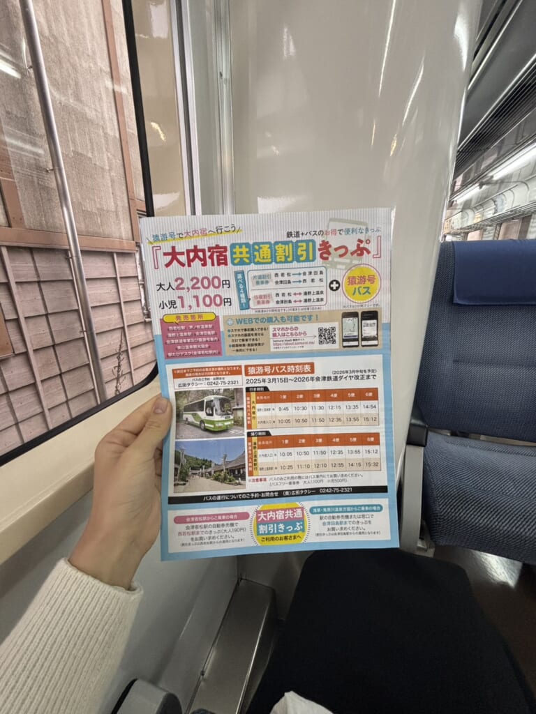 大内宿に行くには別途2,200円でこちらの共通割引きっぷを購入しないといけないです。電車とバスで大内宿まで向かいます。