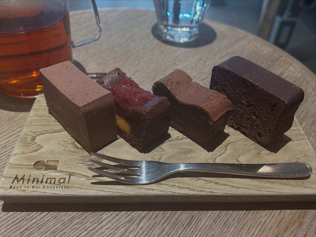 この部分は、以前書いた記事【店内で食べ比べ可能!】ガトーショコラ専門店「Minimal The Baking 代々木上原」と【富ヶ谷本店限定】カカオスイーツの有名店「Minimal」のチョコレート食べ比べセットの省略版です。詳しい情報を知りたい方は、以下のボタンから記事をチェックしてください!