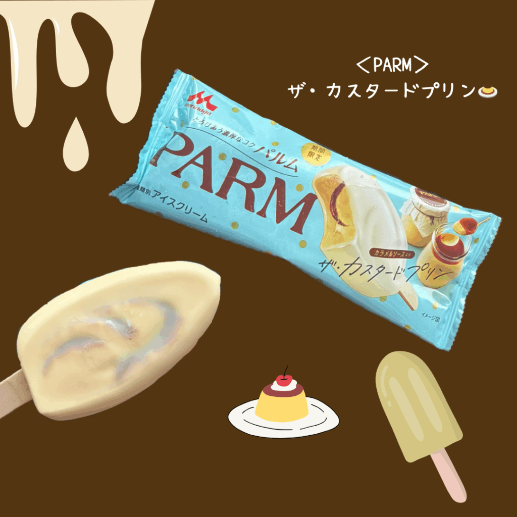 森永乳業のバーアイス「PARM(パルム)」から、カスタードプリン味が期間限定で登場しました🍮