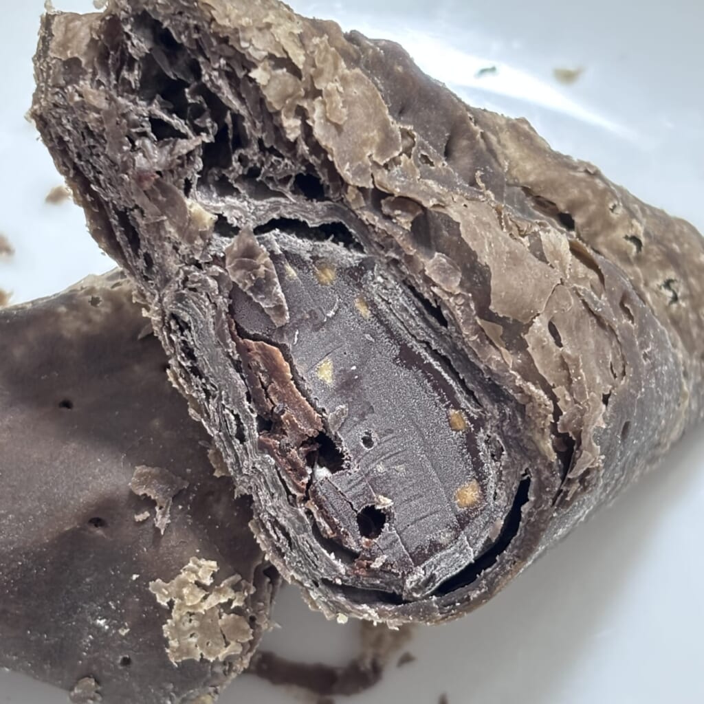 中のチョコクリームは少し噛むとほろっと崩れて口の中でゆっくり溶けていきます!
