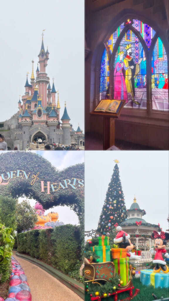 こちらの方が面積は広く、アトラクションが豊富であったり、お城もあったり、メインのパークなのかなという印象を受けました。私はまずこちらのパークから入場しました!(パーク間は何回でも再入場できます。)眠れる森の美女のお城がピンク色でとっても可愛らしかったです!🎀💖お城の中も入ることかできて、かわいいステンドガラスがたくさんありました。アトラクションは東京にもあるのですが白雪姫やピーターパン、カリブの海賊、イッツアスモールワールド、スペースマウンテンなどに乗りました!特にカリブの海賊とスペースマウンテンは東京のアトラクションとの違いがはっきりしていて面白かったです!😆私は浮遊感が苦手(タワーオブテラーは本当に嫌いです…!)なのですが、スペースマウンテンは乗ることができました!✌🏻スピードは速くて、回転もあるのですが、浮遊感はあまり感じなかったので楽しめました!誘ってくれたお友達に感謝です!!閉園時間の後にはお城でプロジェクションマッピングが始まり、とっても綺麗で迫力満点でした!🥹❤️🔥閉園時間間際にはお城周辺に人が大行列ができるので、早めに場所を確保することが必要です。本当に素晴らしかったので、絶対に最後まで見ることをおすすめします!🌟
