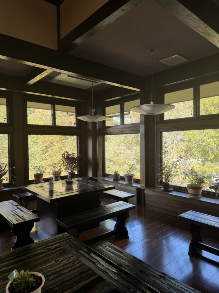 木造の和風旅館で、とっても落ち着く空間でした。入ってすぐの空間には大きな窓があり、美しい景色を見ることができます♡