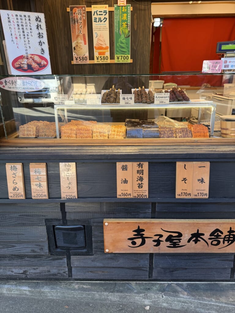 私が今回行ったのは、手焼きせんべいの専門店『寺子屋本舗黒川店』です。黒川でしか食べれない限定ぬれおかきがいただけます。