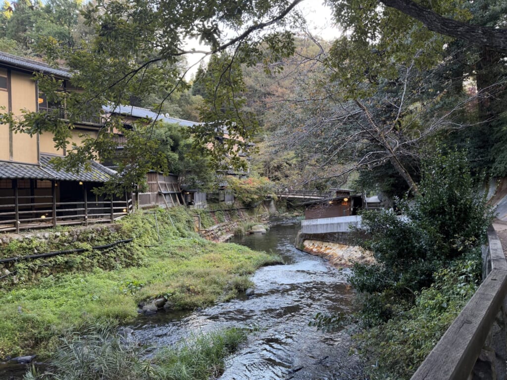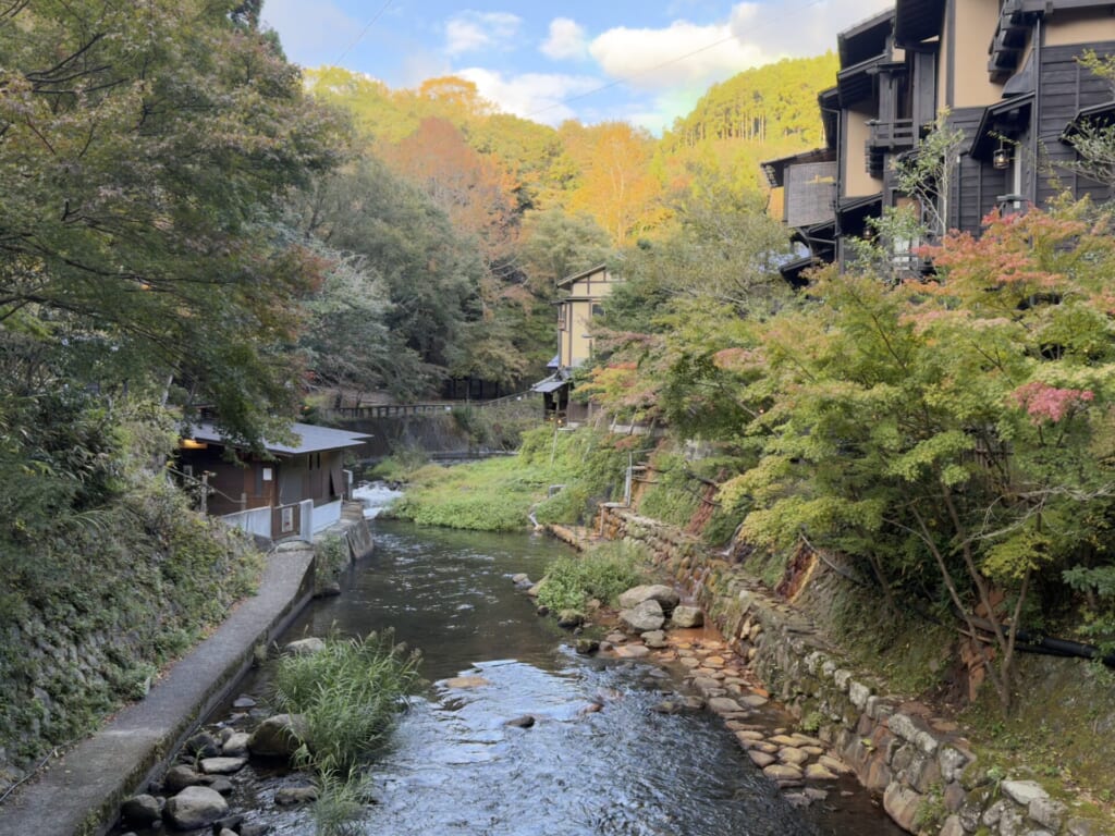 山々に囲まれ、三十軒の旅館が集まった心落ち着く田舎の温泉街。私はちょうど紅葉の時期に行ったのですが、冬には雪景色、春には花々、夏には美しい緑に囲まれるなど、どの季節に行っても美しい自然に癒されることができます。