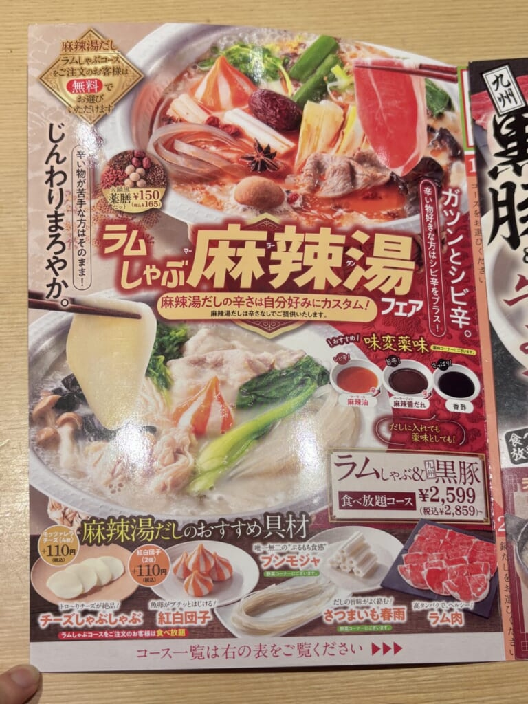 しゃぶ葉の麻辣湯フェアでは、主に2つのコースが用意されています!