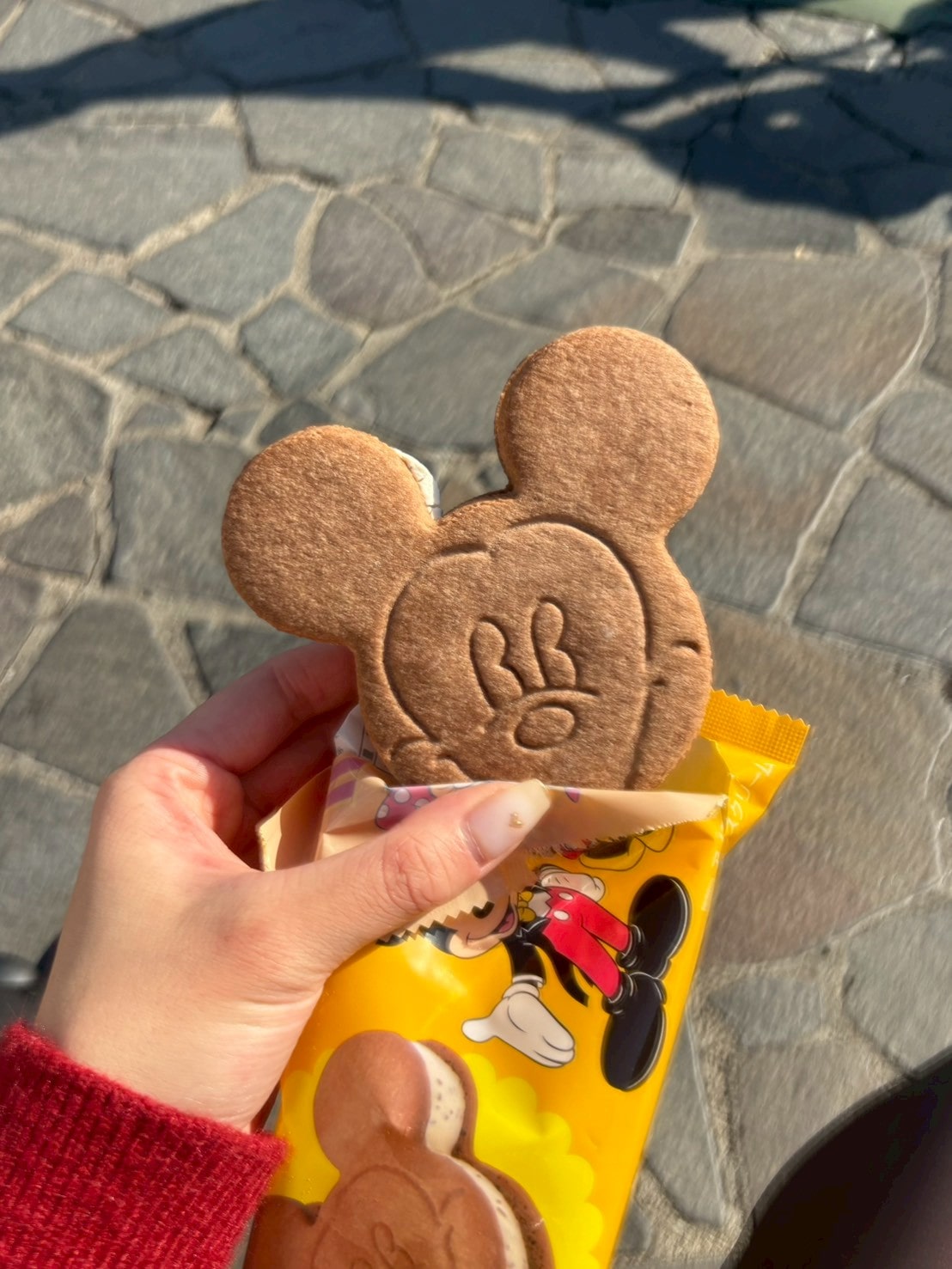ランド一発目のフードは、定番のミッキー・クッキーサンドアイスを♩