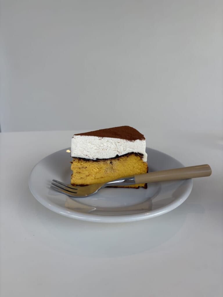 かぼちゃとクリームチーズをふんだんに使った一品で、なめらかなかぼちゃの層とほろ苦いパウダーのかかったクリームの層がベストマッチ!!