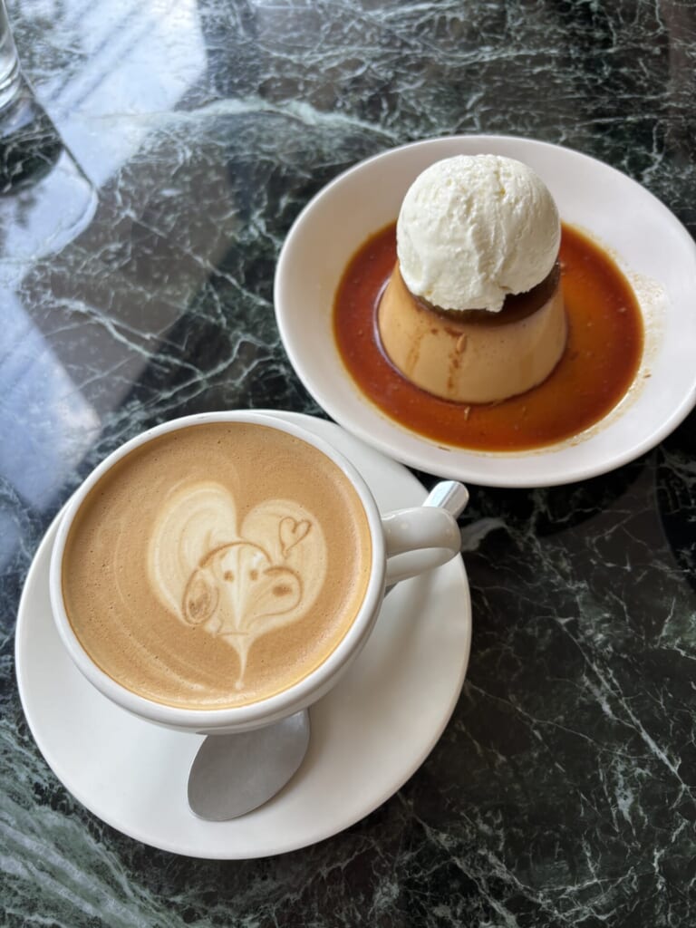 「生キャラメルと岩塩の固めプリン」は、ドラマで「プリン」の手話が話題となったため、人気メニューとなりました♡固めで甘すぎず、キャラメルと岩塩による豊かな味わいのプリンです!犬のラテアートもとってもかわいいくて、もったいなくて飲めません☕