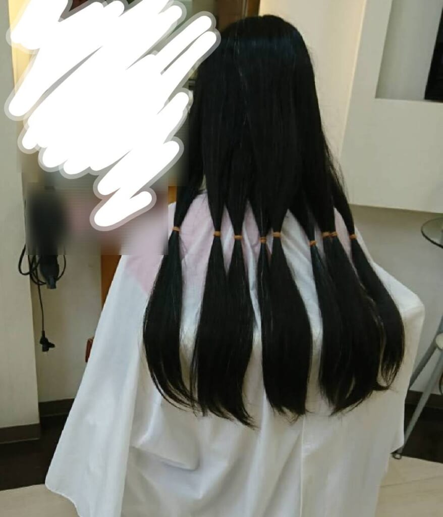 長さは長かったのですがヘアダメージがひどすぎて提供できる状態ではありませんでした。もう少しヘアケアをきちんとしておけばよかったなと後悔です….(涙)