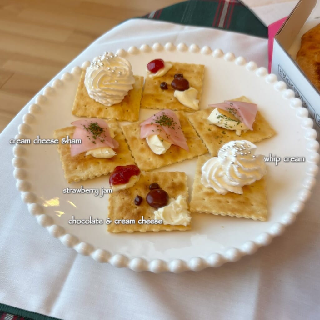 クリームチーズやホイップクリーム、いちごジャムなどでアレンジした簡単クラッカーです🧈