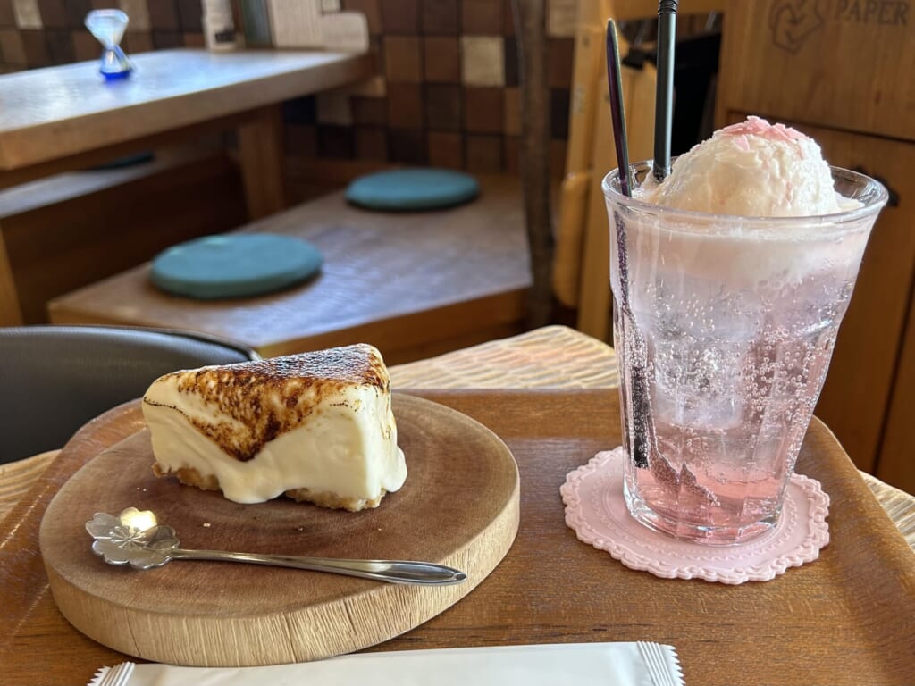 今回は、「炙りチーズケーキ」と「桜のクリームソーダ」を注文しました!