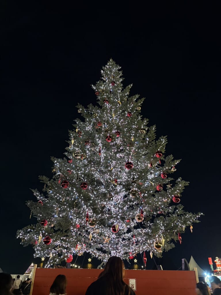 メイン会場の中心で大きくそびえたつ、高さ約12mの巨大クリスマスツリーの高さは過去最大!15分ごとに行われる特別イルミネーションがとっても素敵✨