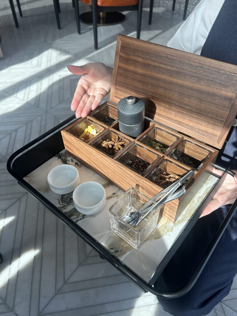 飲み放題のティーの中でティーに入れる香りを選べれるメニューもあり、こちらもスタッフの方が持ってきてくださり、お好みで選ぶことができます!