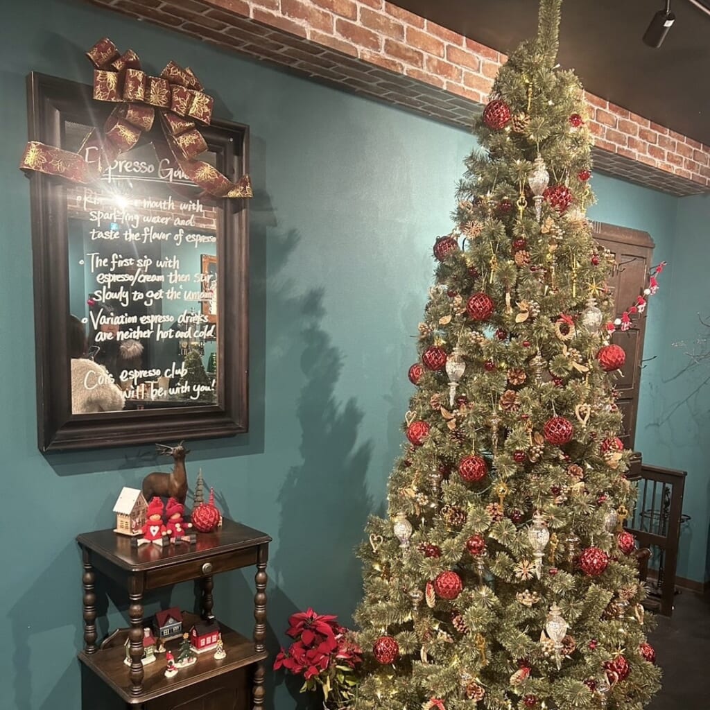 店内には大きなクリスマスツリーが飾られています🎄去年は1本だったのが今年は3本もあり、クリスマスツリーに囲まれる♡