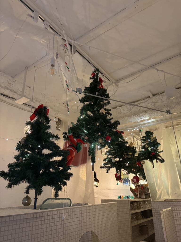 小さいクリスマスツリーがつるされていたり、鏡付きのクリスマスリースが飾られていたりとフォトスポットが沢山✨