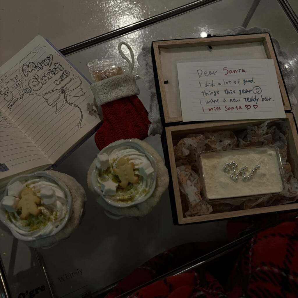 プレゼントボックスが席に届き、中にはケーキとサンタさんへのお手紙が入っていて可愛い♡