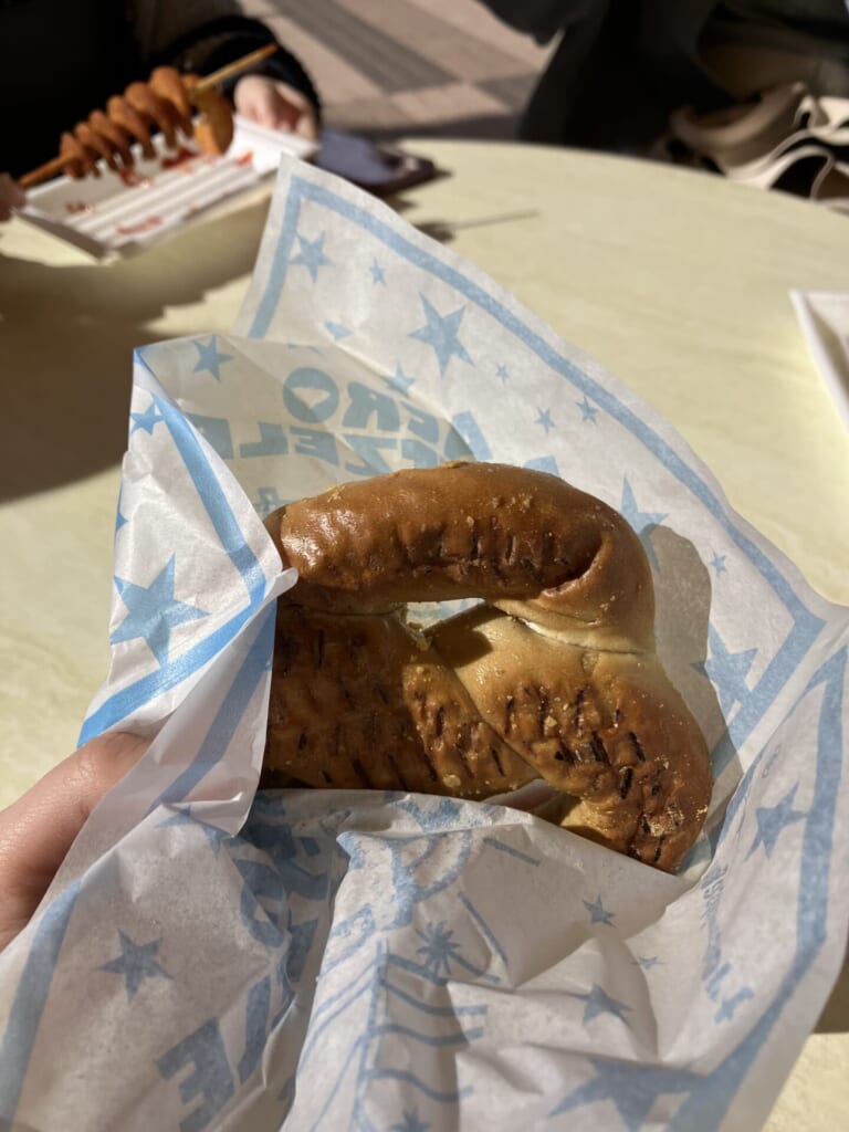 アクロバット後は軽食も楽しみました♡こちらのプレッツェルはチーズがとろけて寒い日にぴったりの味わいでした!