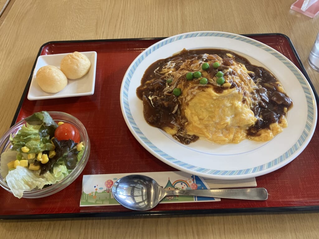 オムライスはサラダとデザートもついてボリューム満点でした!