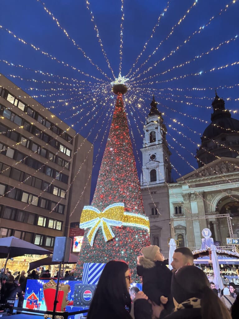 聖イシュトヴァーン大聖堂の周辺ではクリスマスマーケットが開催されていました。17時半からは5分ほどのプロジェクションマッピングを見ることができました!✨お友達によると、17時半、18時、18時半…というように30分おきにプロジェクションマッピングがあり、毎回内容が違うようです!