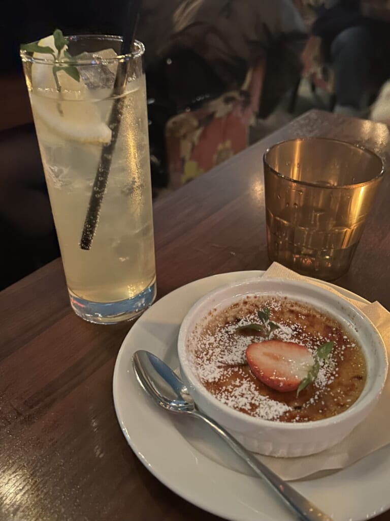 夜ごはん後の甘いものに最適な「クレームブリュレ」と、さっぱりした味わいの「レモンスカッシュ」。「クレームブリュレ」は量が少なめで、ちょっと食べにもうれしいサイズ。量が少ない分、上のパリパリを存分に感じられました!