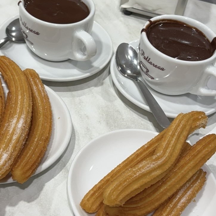 朝ごはんには、芦田愛菜ちゃんがテレビ番組で訪れていたGranjala Pallaresaにチュロスを食べにきました!ここのチョコレートは昨日のお店のものよりも甘かったです、!