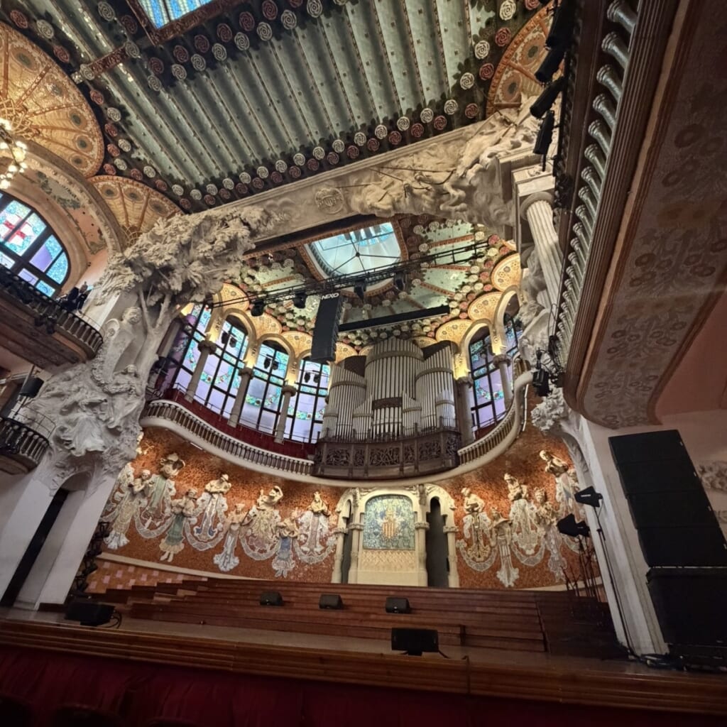 カタルーニャ音楽堂は、ガウディと同時代に活躍した建築家であるモンタネールが作った音楽堂です!細かなところまでこだわりがつまっていて、とても素敵でした!またツアーの方に案内していただいたので、とてもわかりやすかったです!