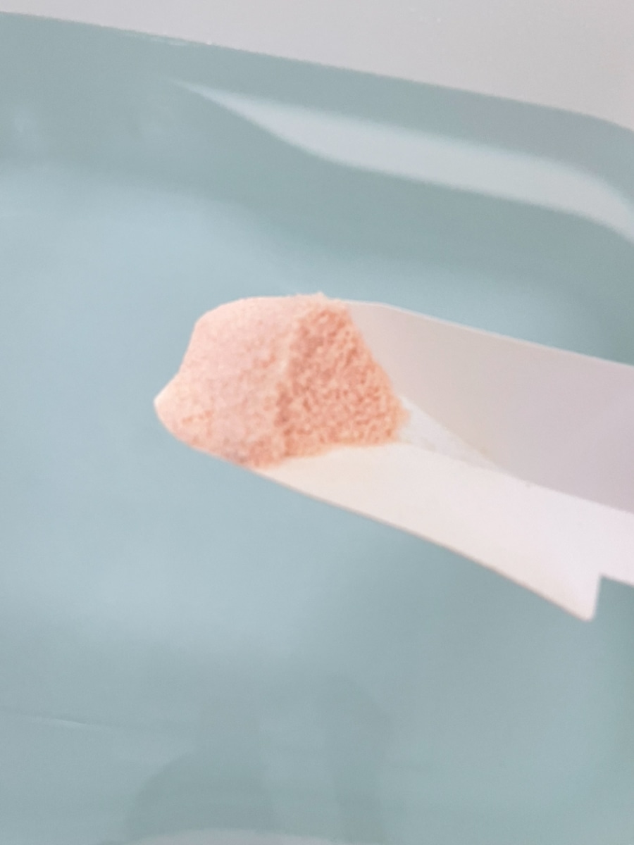 適量はスプーン2杯(40g)なのですが、浴槽が狭い場合はスプーン1.5杯でも大丈夫でした!よくかきまぜるとお湯が白濁していきます。