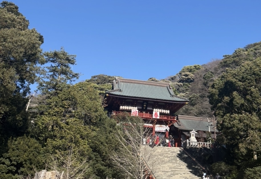 お腹を満たして、鶴岡八幡宮に行きました!成人式が近かったこともあって人はどこも行列になっているほど多かったのですが、天気はすごくよくて、いい景色でした☀