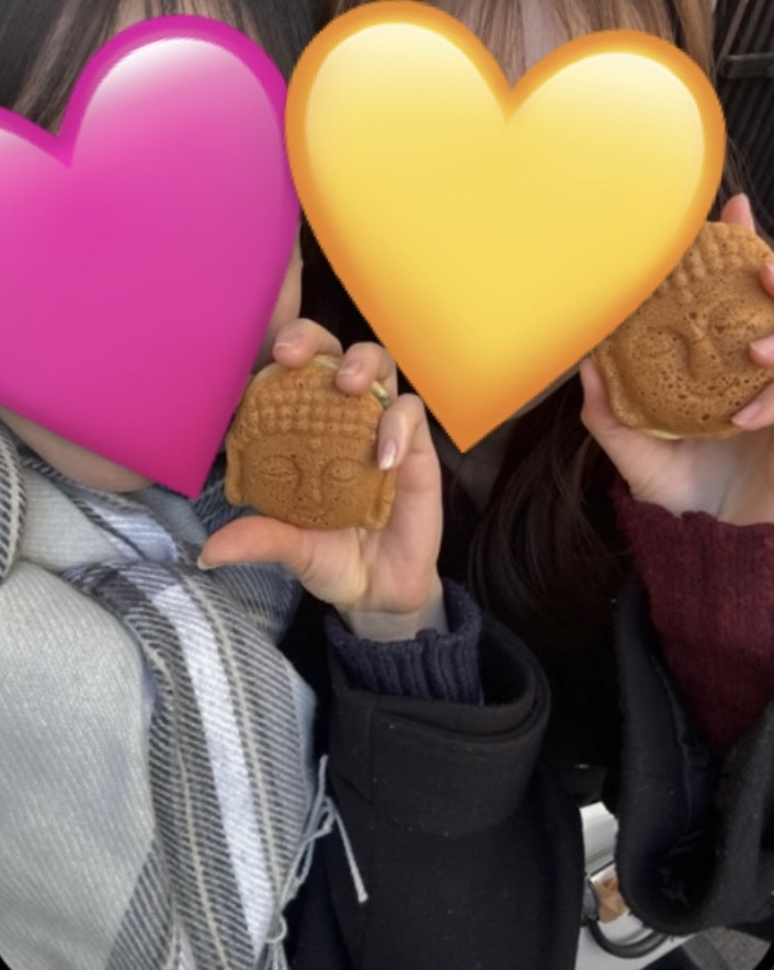 まずは甘いものが食べたくて「大仏焼き」を食べました!中身の種類が変わっていて私たちはブルーベリークリームチーズにしました💜
