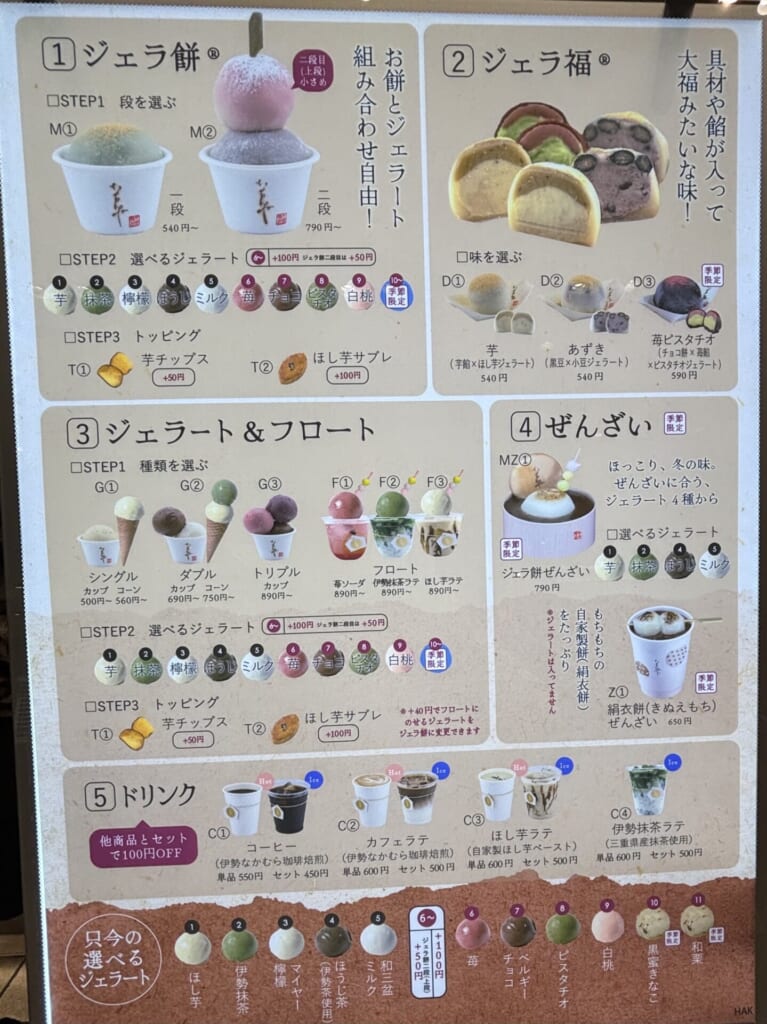 ジェラートとお餅を組み合わせたデザートやドリンクなどが種類豊富!