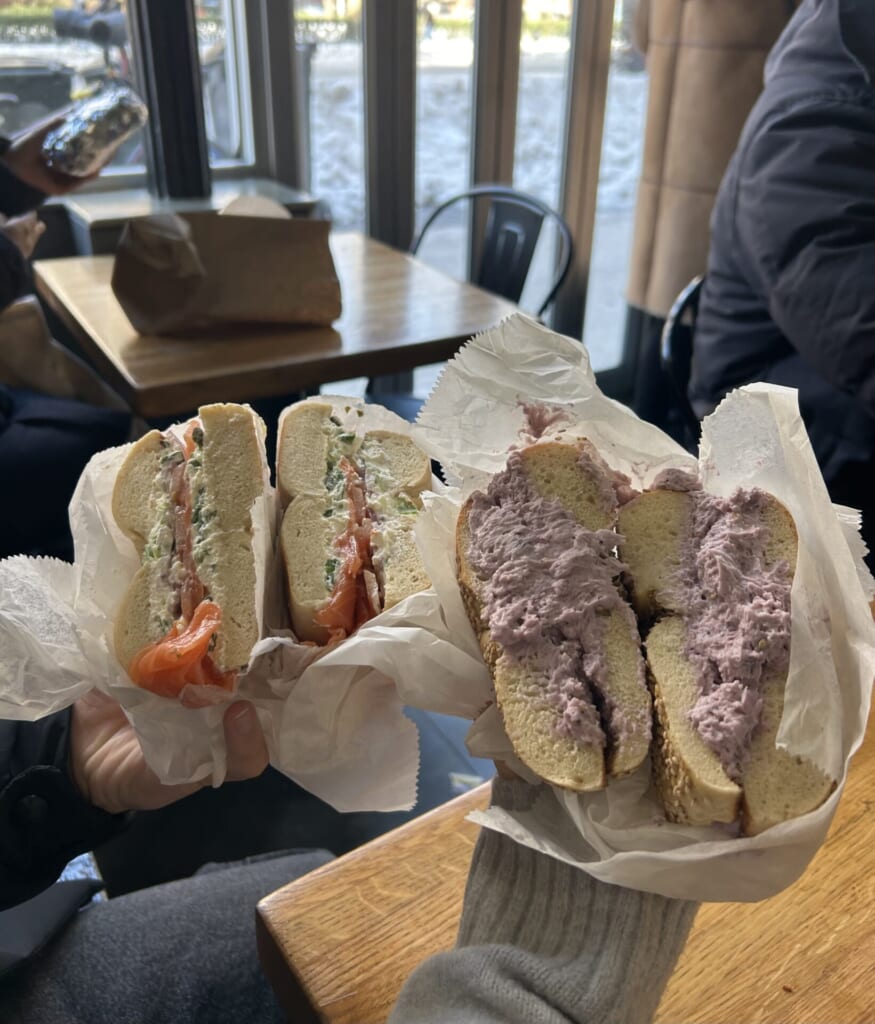 ニューヨーク名物といえばベーグル!街を歩けば、至るところにベーグル店が並んでいます♡初日はホテルから徒歩10分圏内のBrookyln Bagel & Coffee Co.で食べました!!