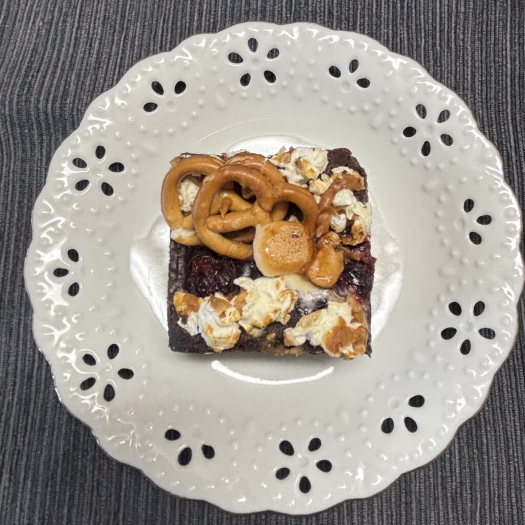 4種類の中で1番ブラウニー部分がシンプルなものでした。上のポップで甘めのつくりな分、下の部分はチョコレートが甘さ控えめでとってもおいしいです。