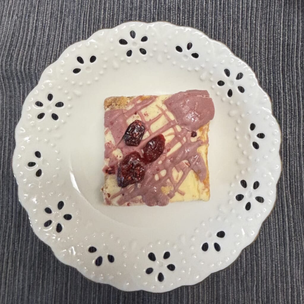 ルビーチョコを使っているということもあり見た目はとってもかわいらしいです。上にトッピングでドライクランベリーがのっているのもバレンタインの赤いハートを連想させます。