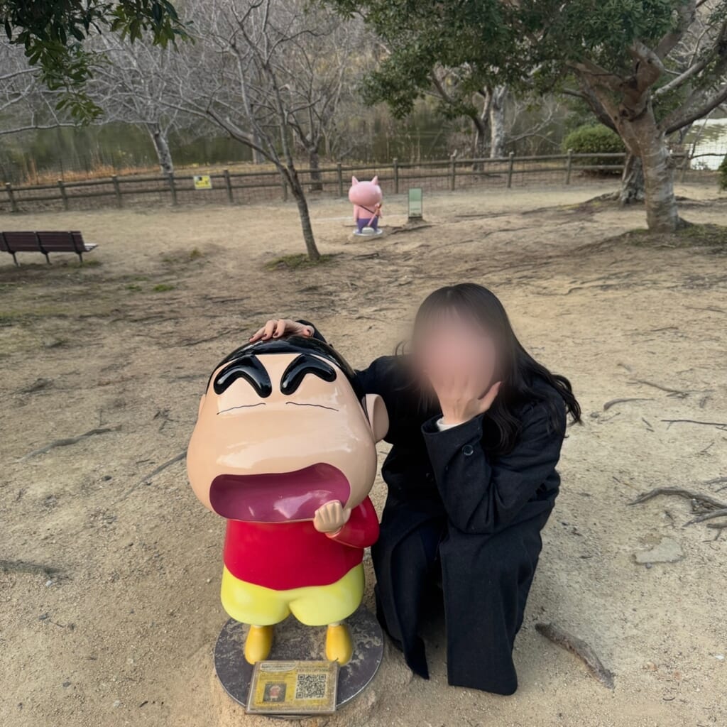 クレヨンしんちゃんエリアの無料ゾーンでは、あらゆるところにクレヨンしんちゃんに登場するキャラクターたちがいます!