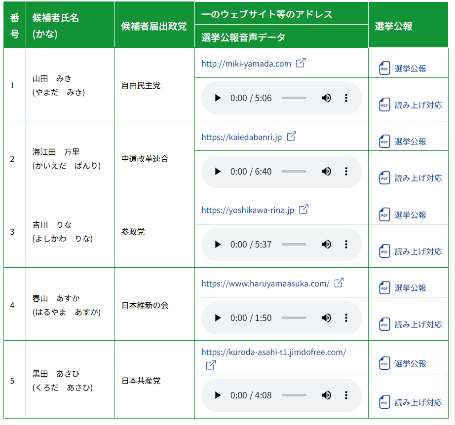 「選挙があるのは分かったけど、誰が出ているの?」と疑問に思いませんか?選挙が近づくと街中でポスターが掲示されますが、それだけだと、どんな人か分からないですよね。実は、各地域の候補者についても、総務省のサイトで掲載されているんです!