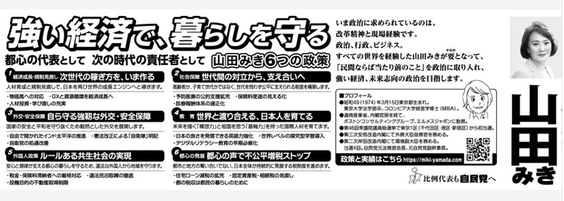 各候補者の「選挙公報」ページを押すと、各候補者の政策を確認することができます!例えば、一番上の山田みきさんの場合は以下の通りです。