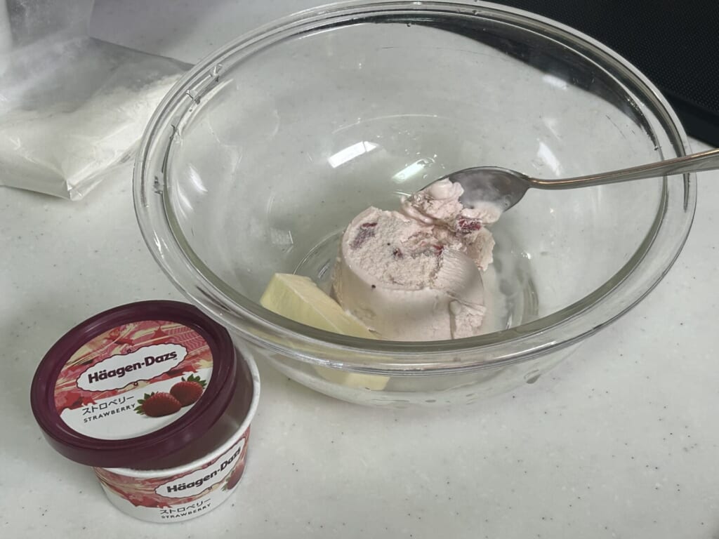 1. ハーゲンダッツとバターをボウルに入れ、レンジでチン