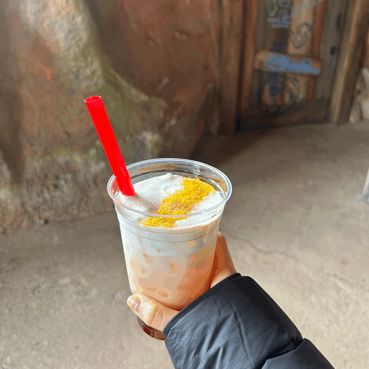 ホイップクリームがふんわりとのっていて、さらに下の方にはトロピカル風味のゼリーも入っていてとても満足感のある飲物でした!ラプンツェルの髪の毛をイメージしたというイエローのパウダーも可愛いです💜🫧