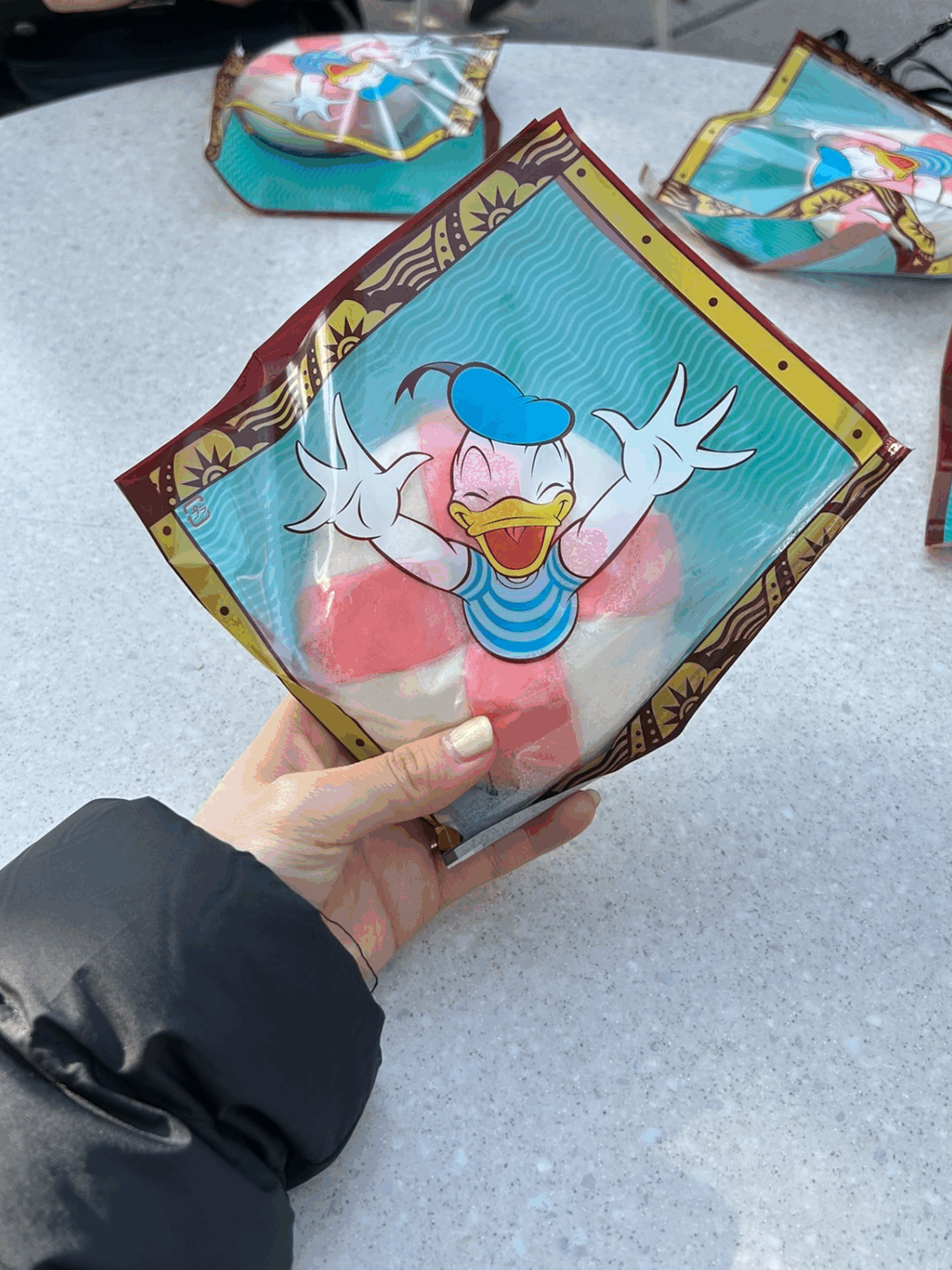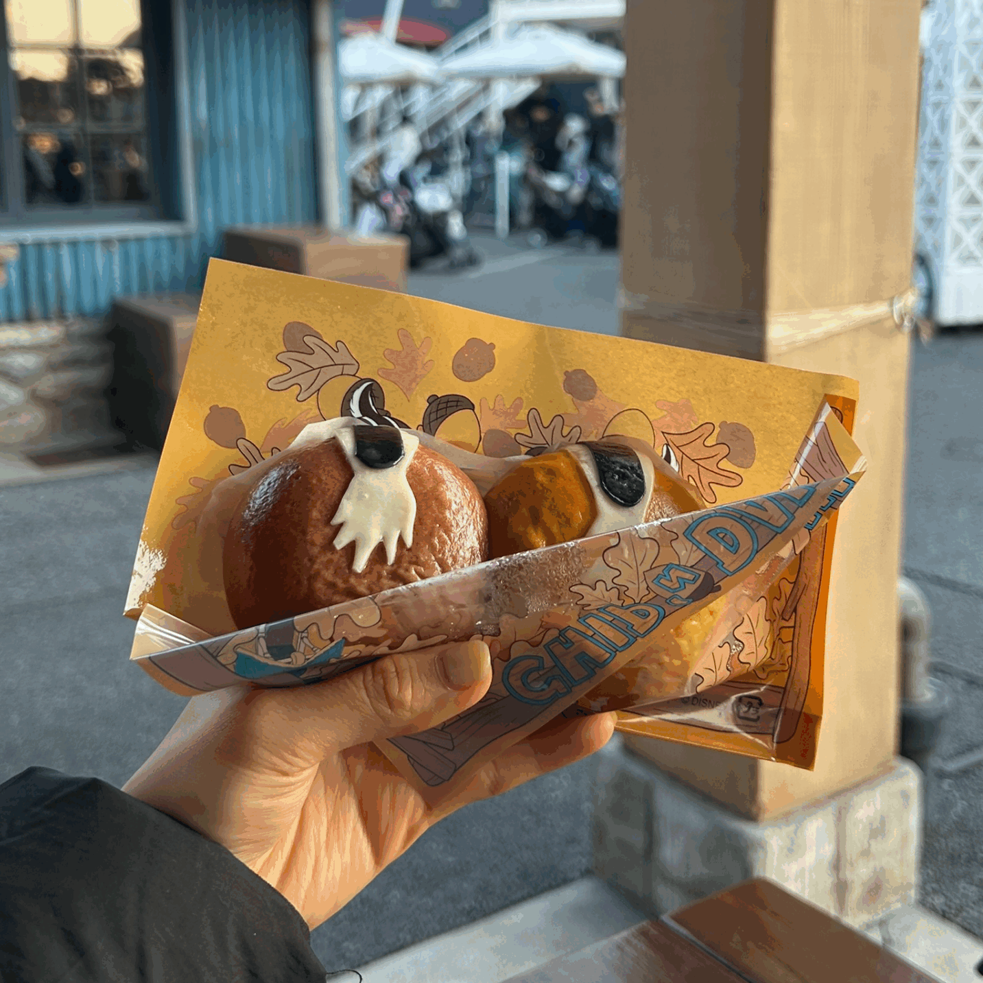 むぎゅっとした生地の中に、エビのあんが詰まっていてとても美味しいです🌟包み紙のうらに、ドナルドの後ろ姿が印刷してあるのも可愛いポイント✨