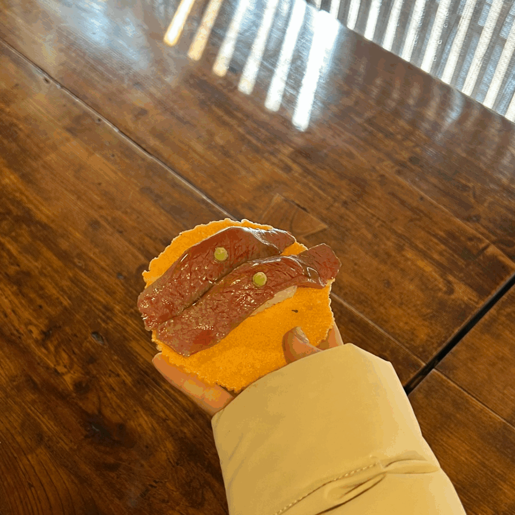 次にいただいたのは、インスタなどでよくみる飛騨牛をつかった肉寿司🍣
