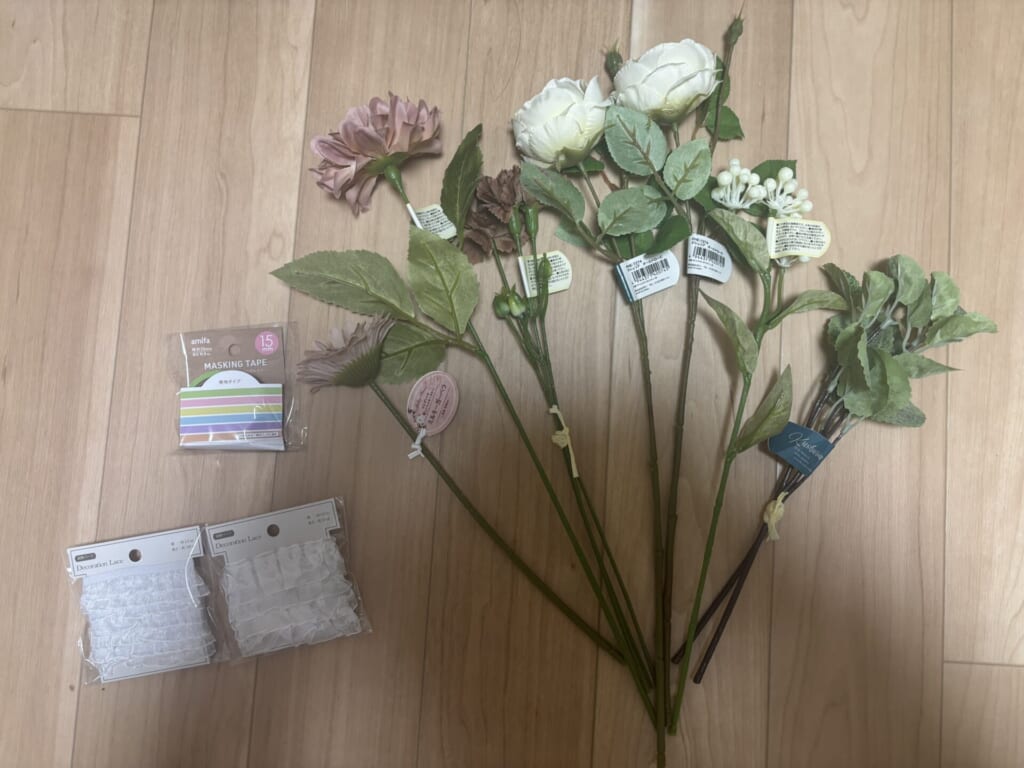 今回、造花ブーケの材料は全てセリアとダイソーで購入しました!