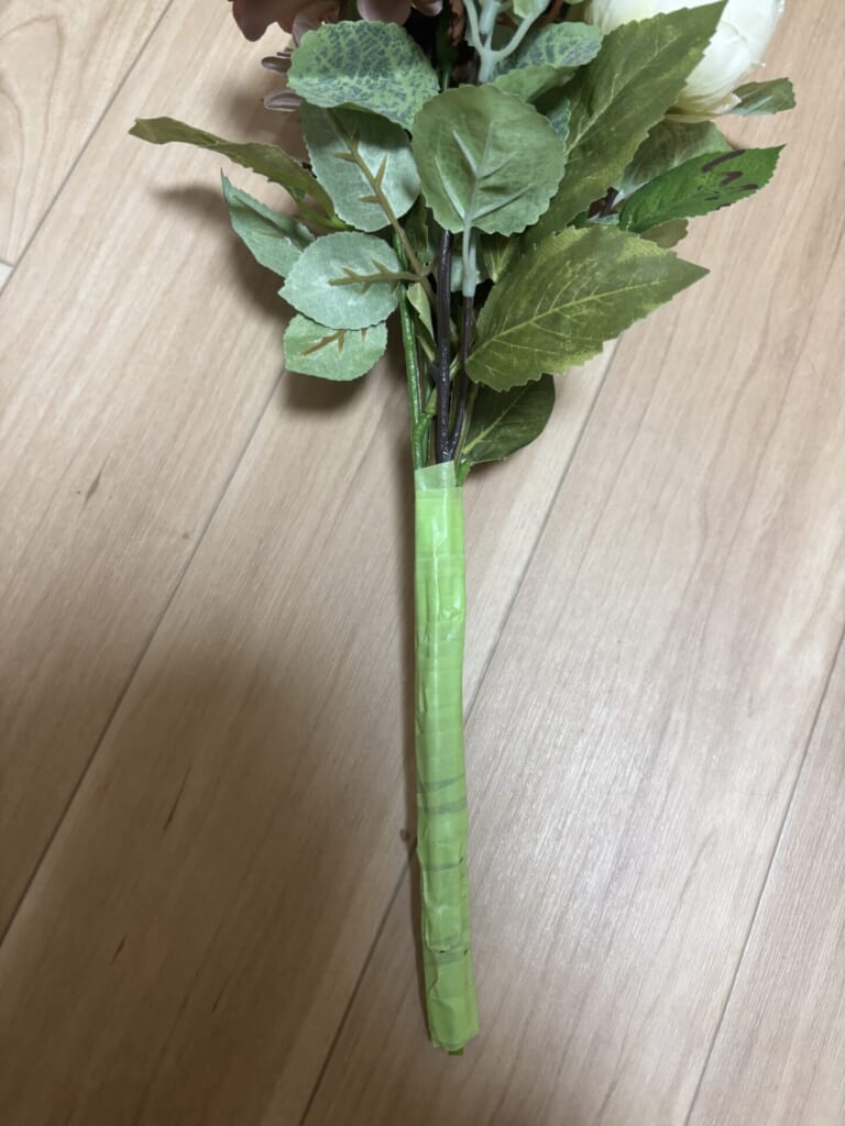 ③お花の茎にテープを巻き付ける