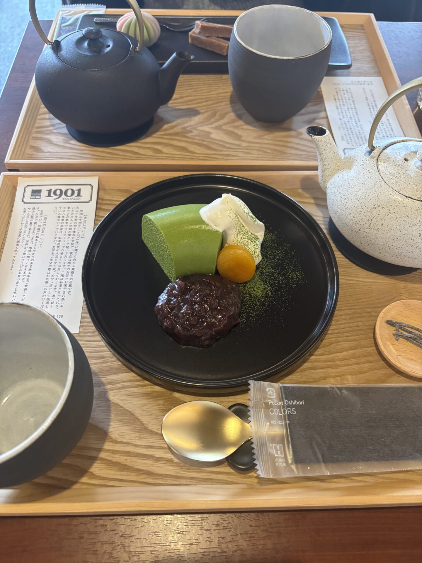 抹茶を使った和菓子とお茶は相性抜群でとても美味しかったです🤍