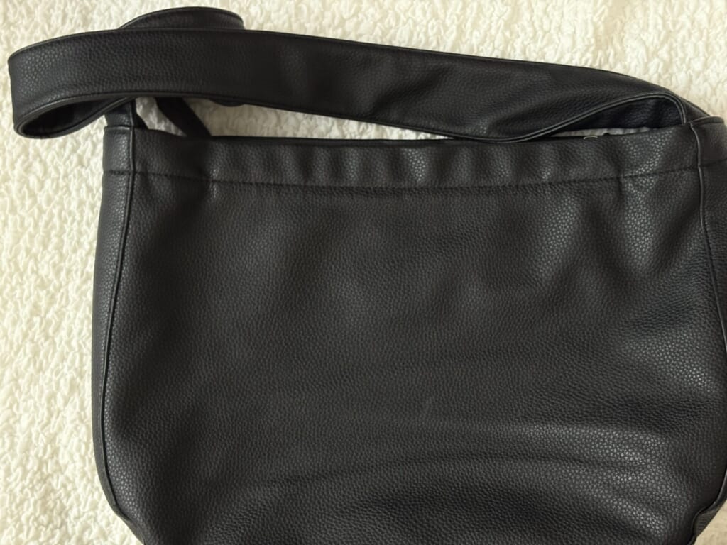 レザー調でシンプルながら上品さがあり、どんな洋服にも相性がいいところも気に入っています。