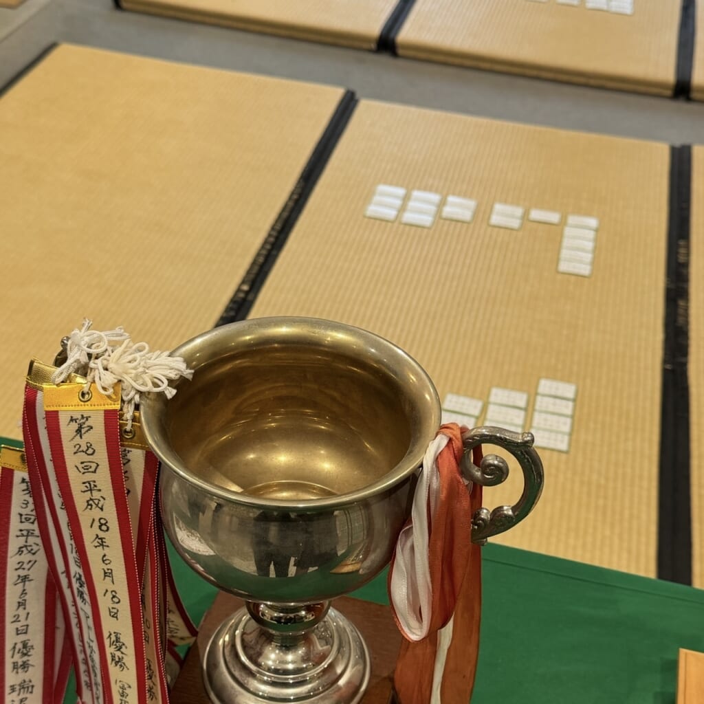 毎年7月には、この近江神宮で高校かるた選手権大会、1月には競技かるたの「名人位・クイーン位決定戦」が行われており、小倉百人一首競技かるたの試合が繰り広げられると共に、選手たちにとって憧れの場となっています。