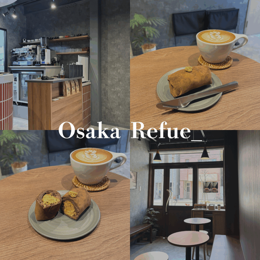 ドバイチョコを求めて私が訪れたのは、大阪 中崎町にあるカフェ『Refue_(リフュー)』土曜日の開店20分後に到着すると店内は満席。30分ほど待って入店しました!店内は2名掛けが4席と小さめで、茶色の丸テーブルがとってもオシャレ♪
